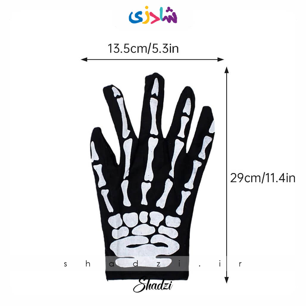 این محصول شامل یک جفت دستکش طرح اسکلت است که مخصوص جشن halloween است و قابل ارسال به سراسر کشور می باشد .