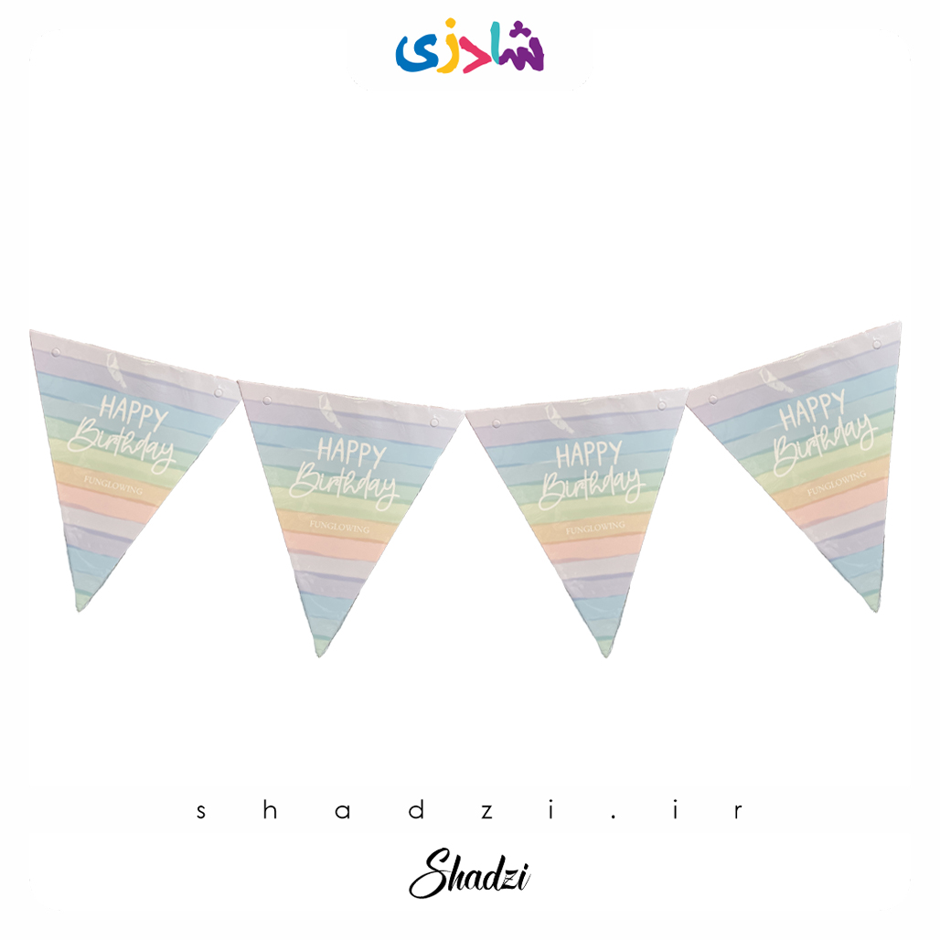 که این ریسه تولد پاستلی از جنس مقوای مقاوم می باشد و طرح روی آن شامل حروف تولد مبارک لاتین ( Happy Birthday ) بوده که به زیبایی تمام طراحی شده است.